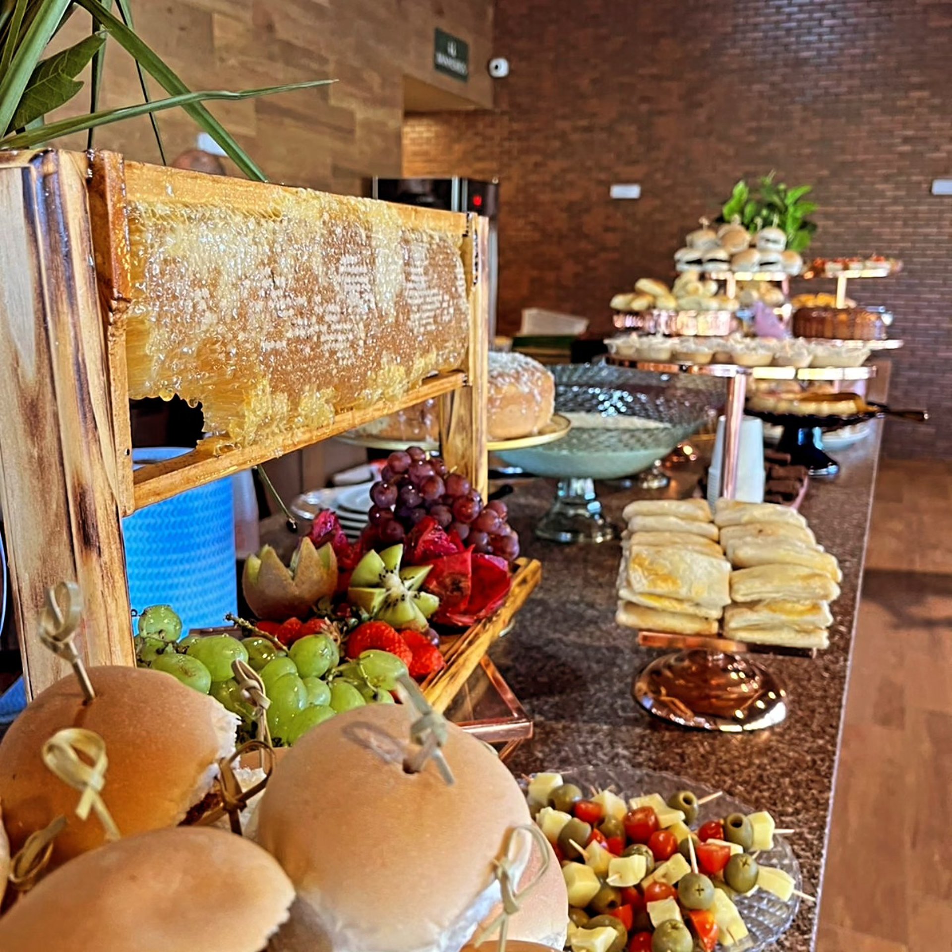 Oferecemos serviço completo: cardápios personalizados, finger foods, mesa posta com louças e cristais, além de toda a estrutura necessária levada até o local do seu evento.