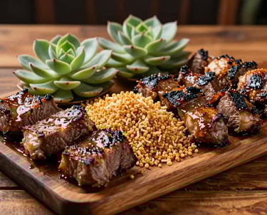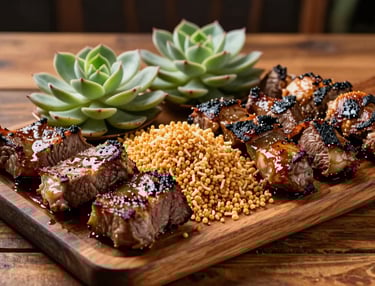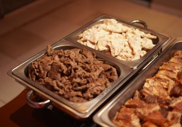Carnes selecionadas com acompanhamentos completos, ideal para um evento saboroso e descontraído
